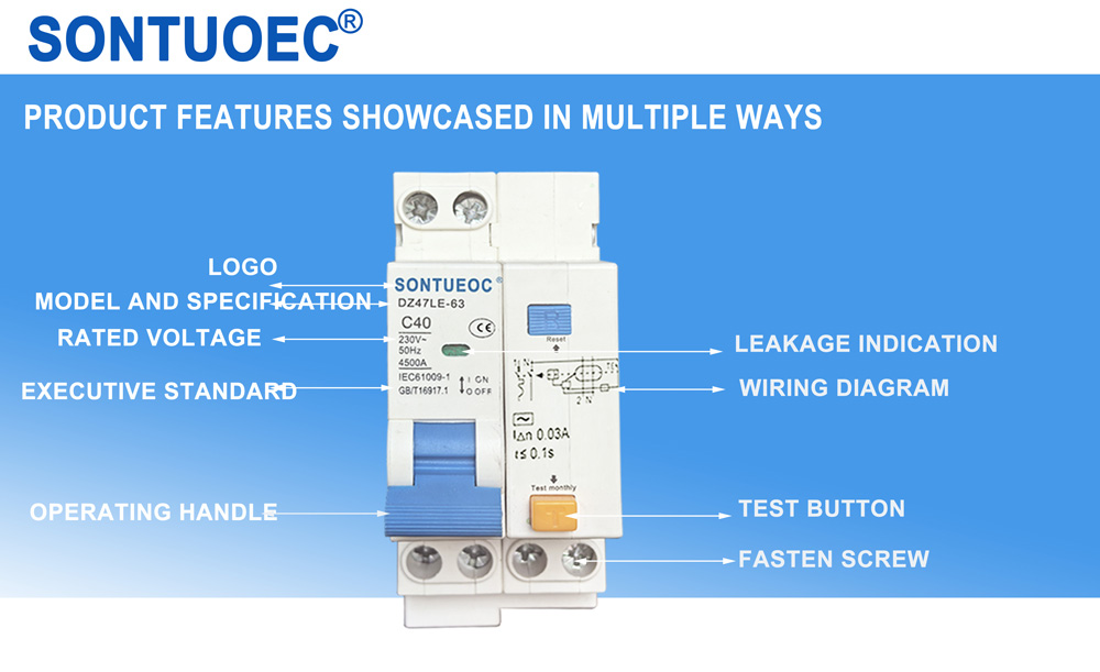SONTUOEC minangka salah sawijining pemasok / pabrikan Cina sing spesialisasine ing produksi macem-macem peralatan listrik cilik. DZ47LE ditrapake kanggo garis voltase AC 50 / 60Hz 230V kanggo kutub siji, loro kabel, 2 kutub utawa 300V kanggo 4 kabel, 4 kutub lan dirating saiki nganti 63A. Bisa nglindhungi garis lan motor saka kakehan lan sirkuit cendhak. Uga bisa digunakake kanggo konversi baris sing jarang lan wiwitan motor sing ora kerep. Iku cocog karo standar IEC61009.1.