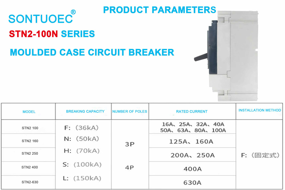 Desain bipolar: MCCB 3P / 4P minangka desain bipolar, tegese bisa ngontrol kabel loro nol lan geni ing wektu sing padha, mesthekake safety lan stabilitas sirkuit.