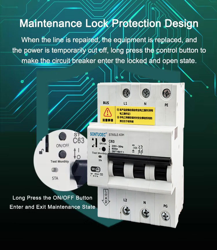 Seri WiFi 4G St65le-63H Series RCBIx RCBIx iki cocog kanggo 50Hz / 60Hz, 230 / 400V 0 ~ 125A Circuit sing duwe fungsi kasebut, perlindungan jarak cendhak lan perlindungan leakage. Kangge, circuit sirkuit cerdas iki duwe fungsi kasebut minangka diuripake oof / ing kontrol remot kanthi global kanthi ponsel Smart Cell.